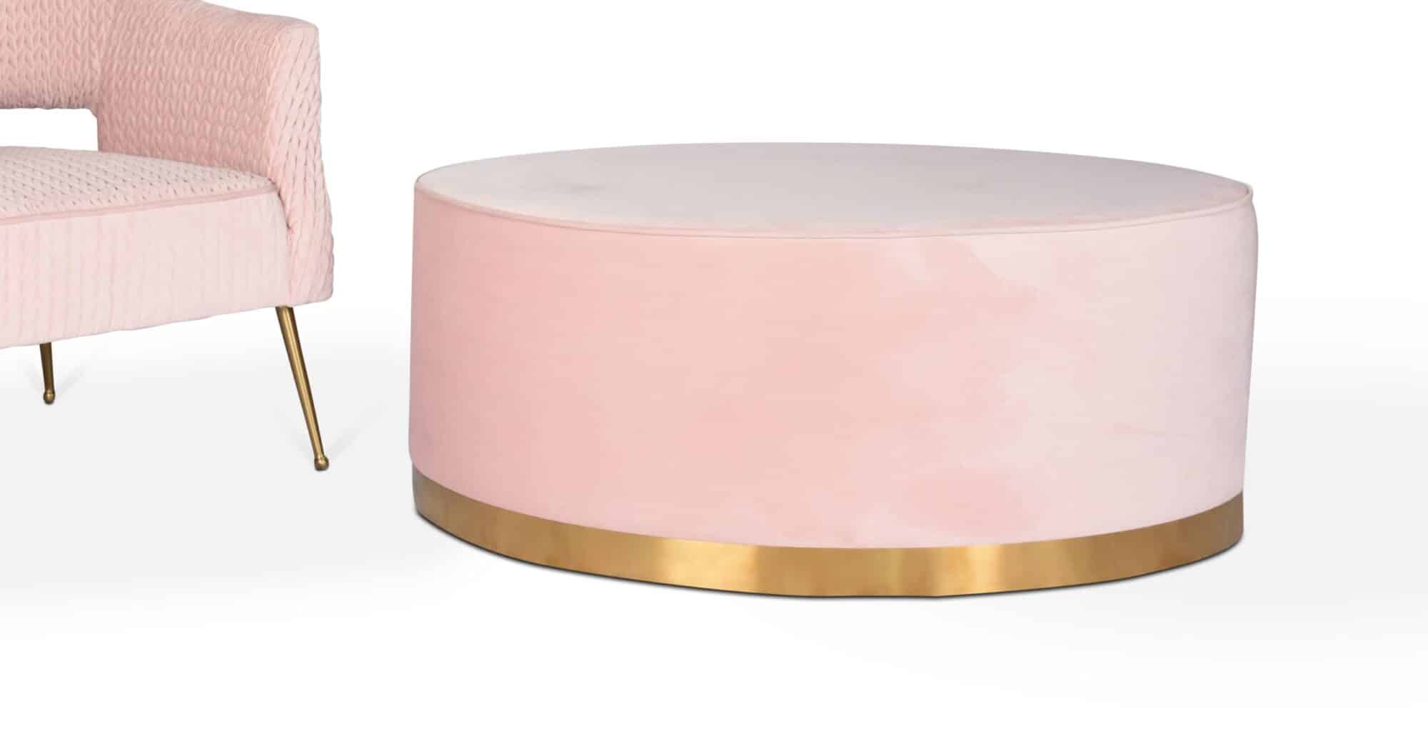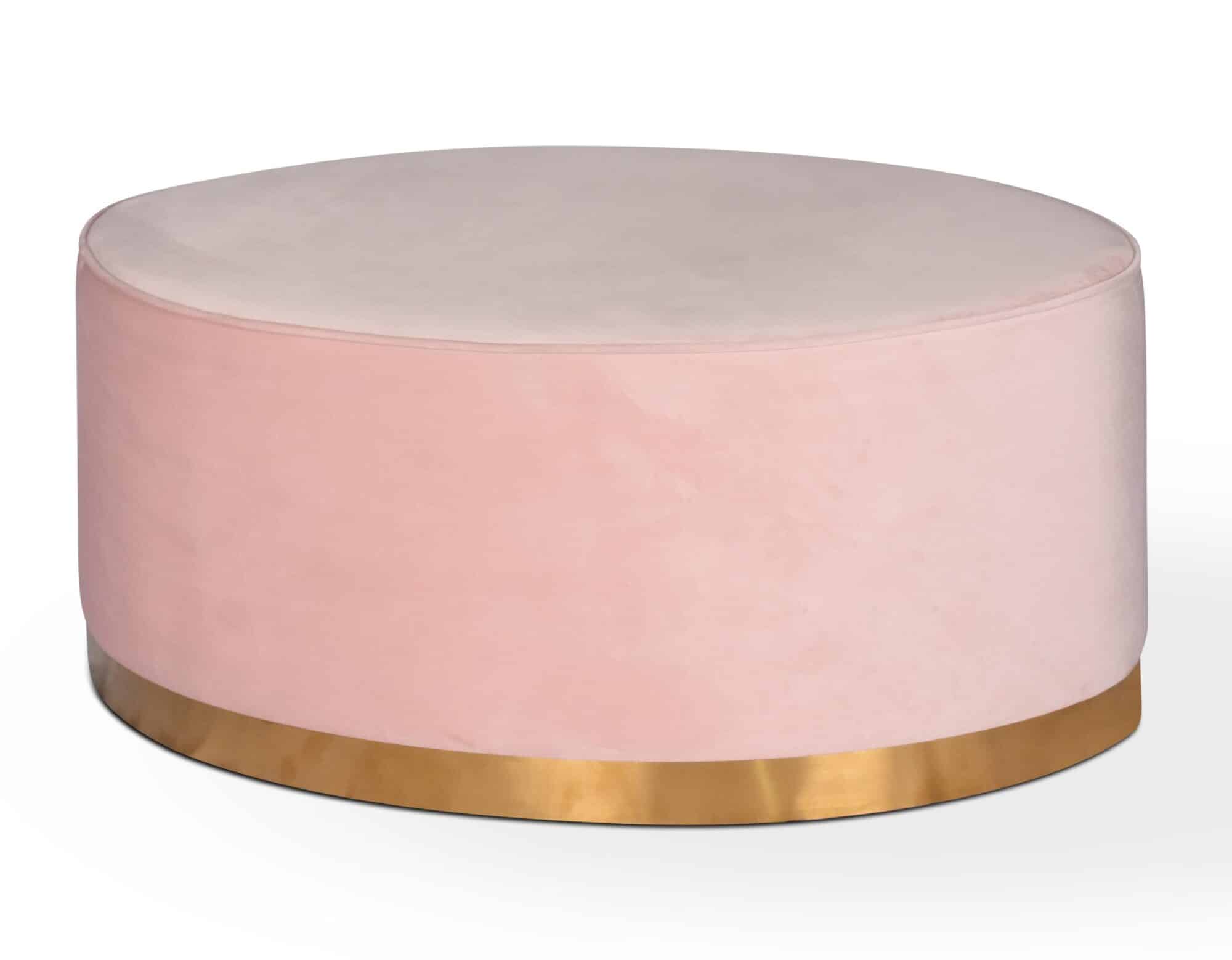 הדום טרנדי בקטיפה ורוד בייבי עם פס מתכת מדגיש בצבע זהב בבסיס