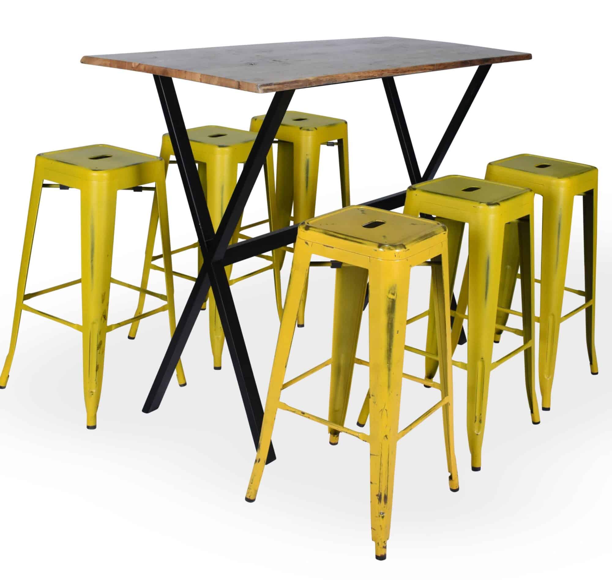 שולחן בר עץ אלון (160/60) עם כיסאות דורותי בר צהובים