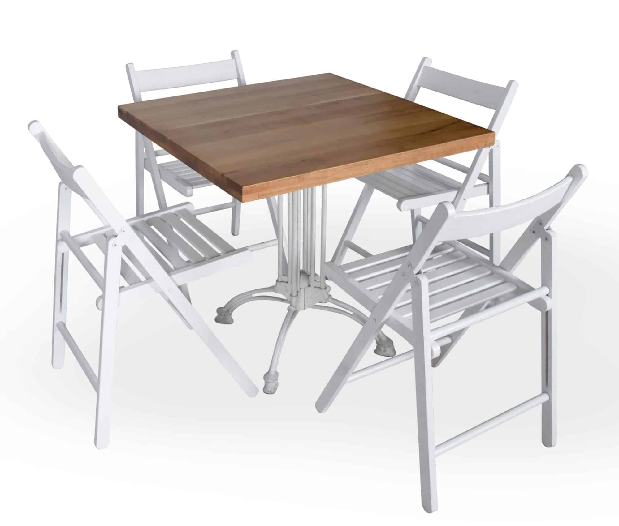 שולחן בית קפה עץ אלון מרובע עם כיסא קרוס לבן