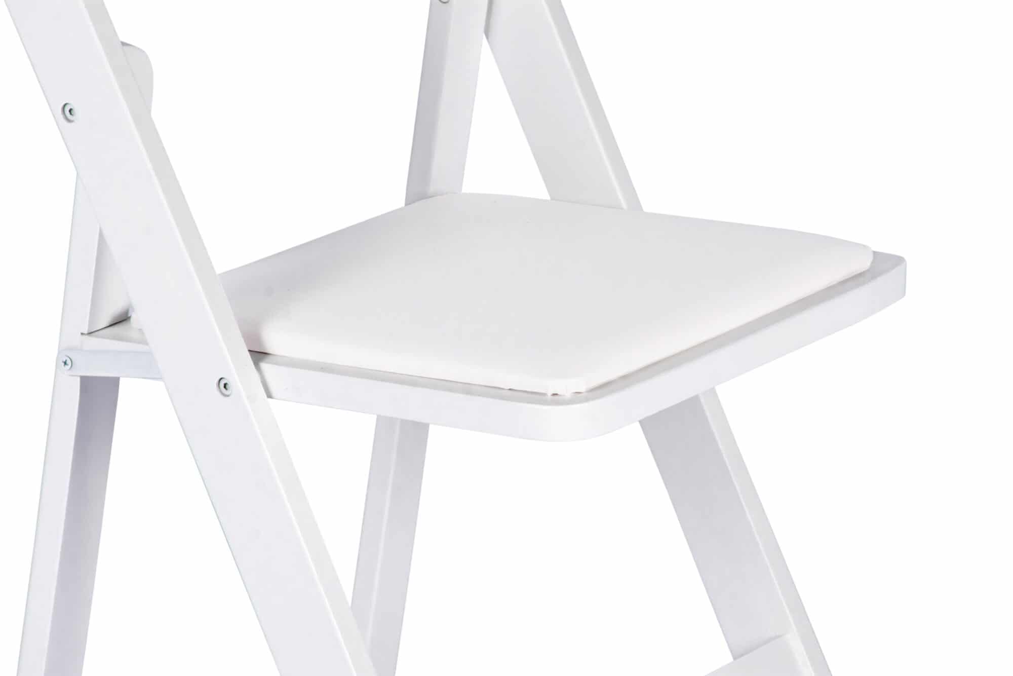 כיסא עץ לבן מתקפל עם כרית סקאי לבנה