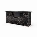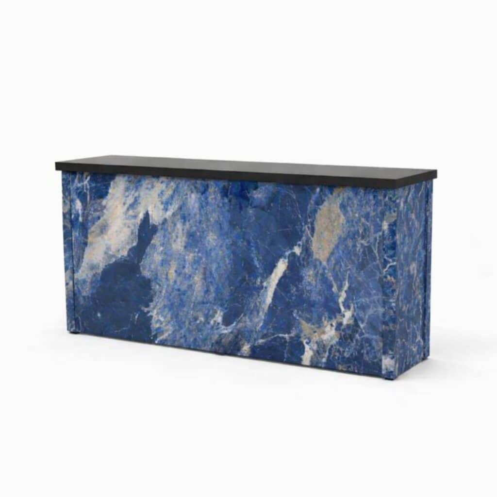 חזית בגימור דמוי שיש, במראה אחיד ונקי, זמינה בגווני לבן, שחור וכחול, עם התאמה למקטעים ישרים ומעוגלים, ולשילוב בברים ובמזנונים כחלק ממערכת מודולרית אחת.