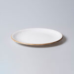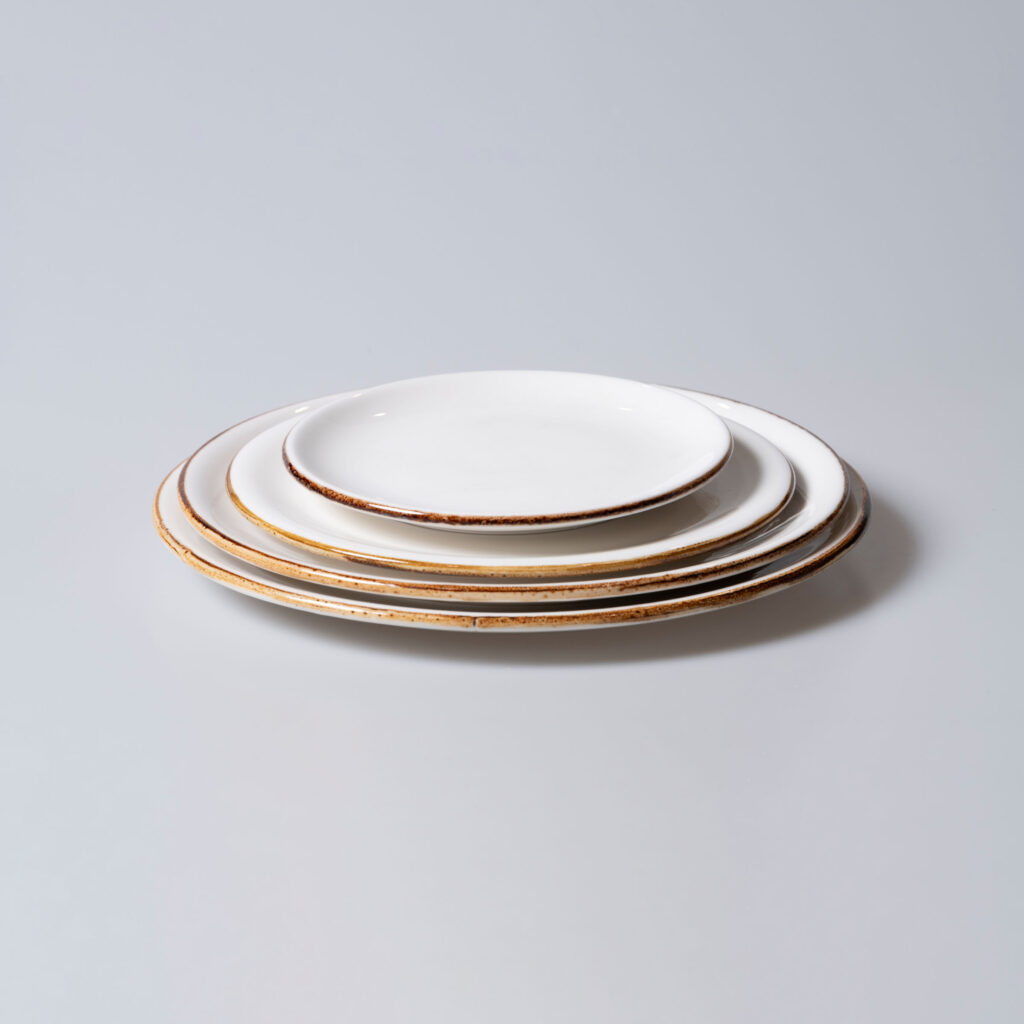 צלחת בגוון שמנת עדין עם פס הדגשה חום בהיקף