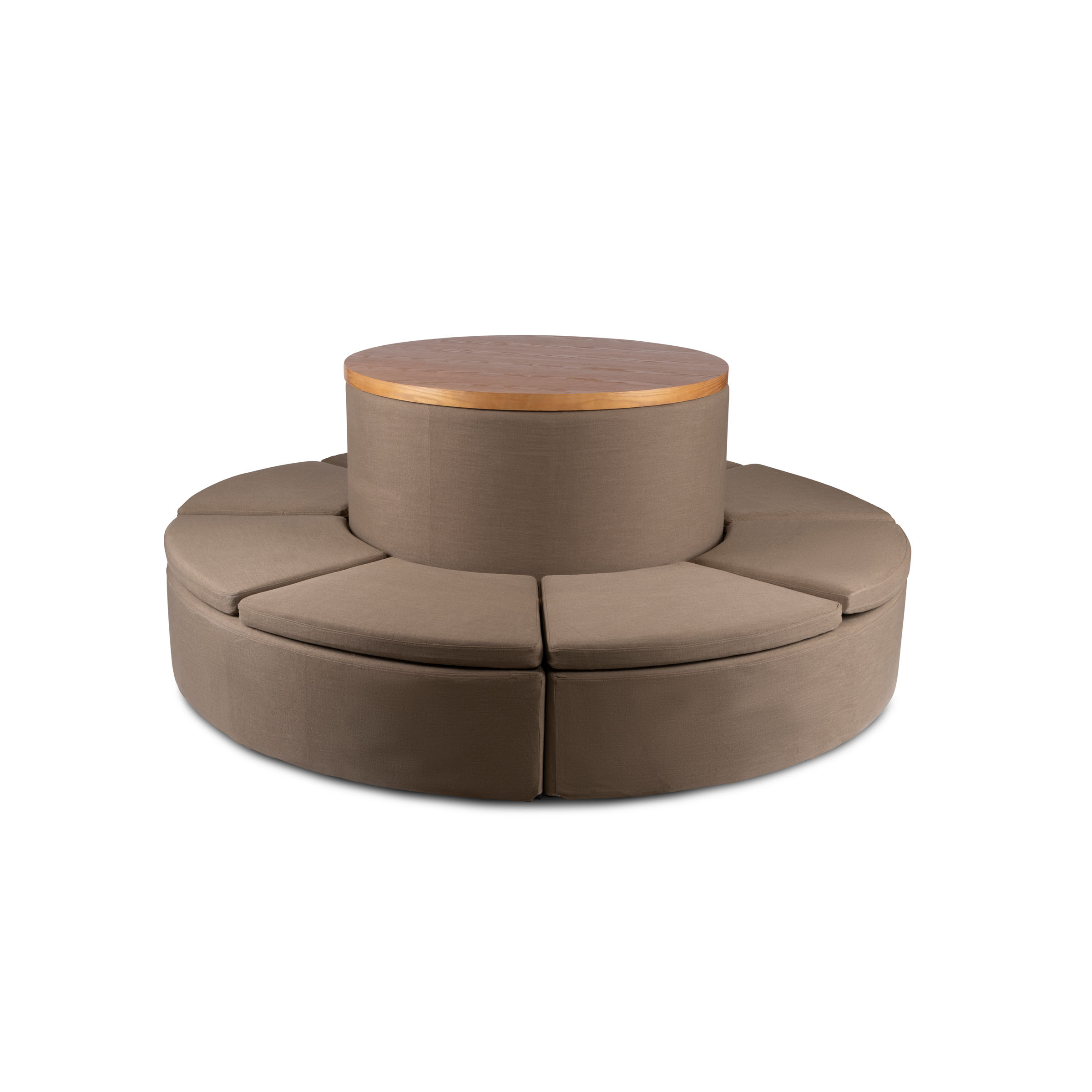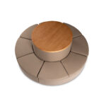 קוטר ספה: 230 ס"מ, קוטר שולחן עץ: 120 ס"מ