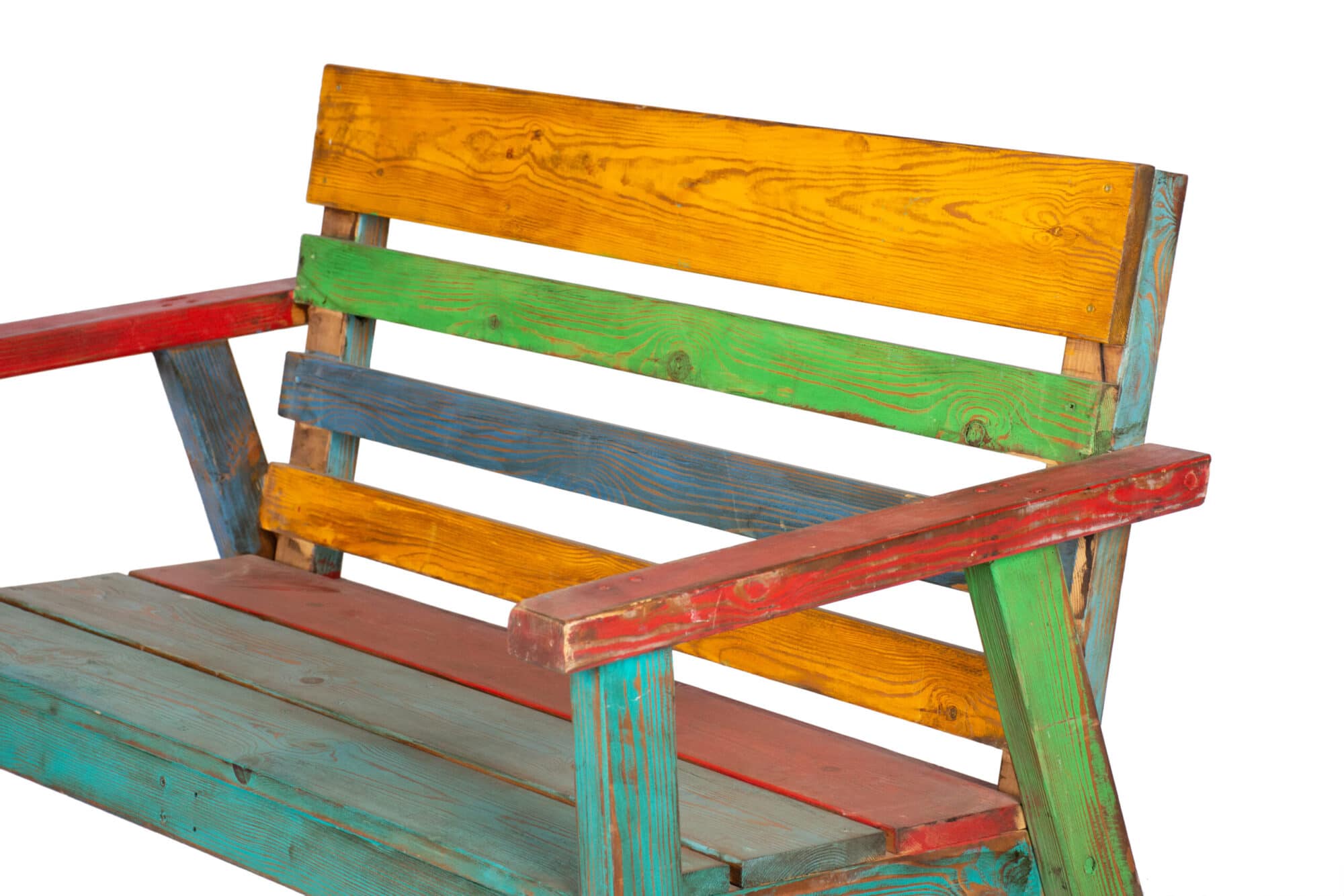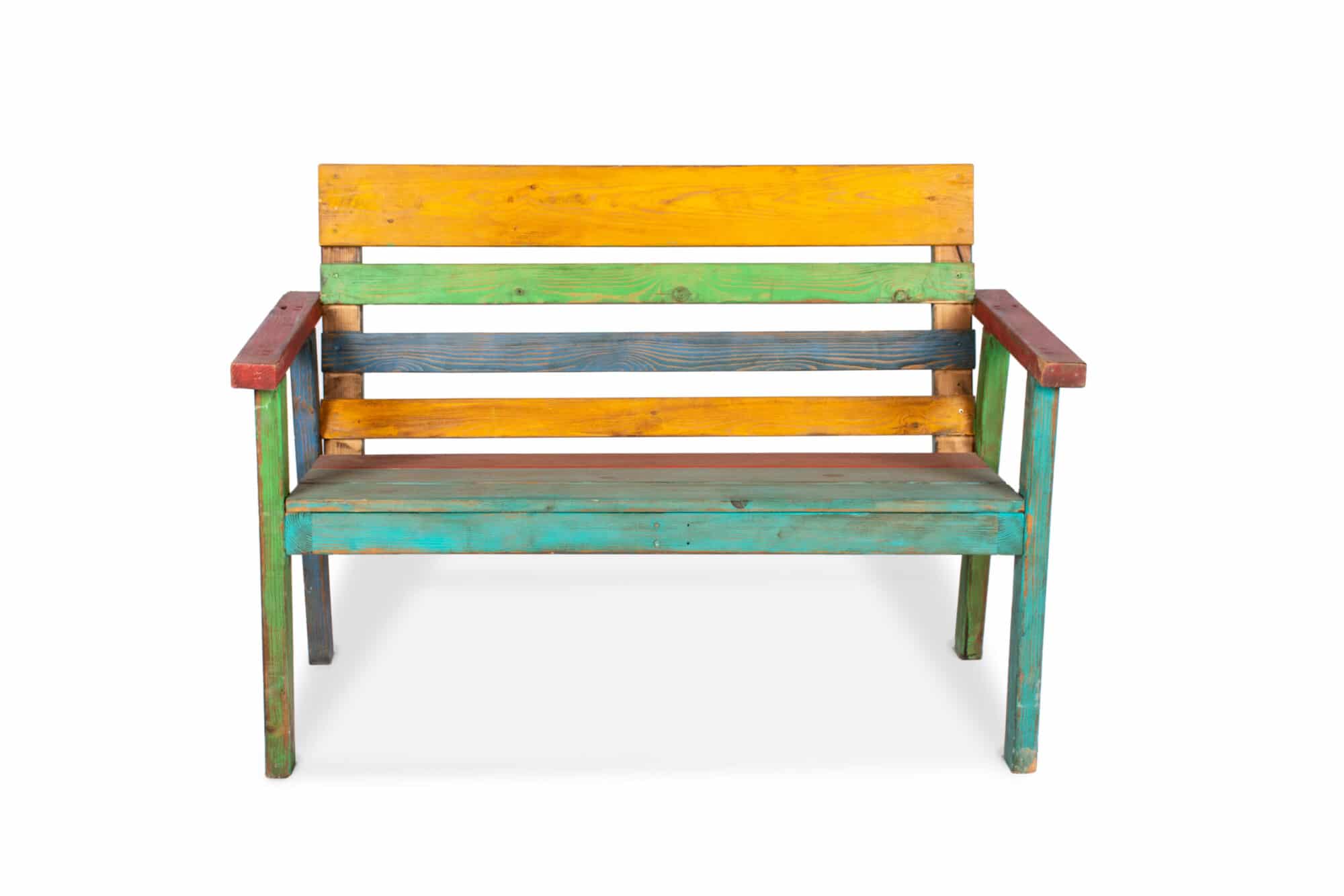 ספסל עץ צבעוני בודד