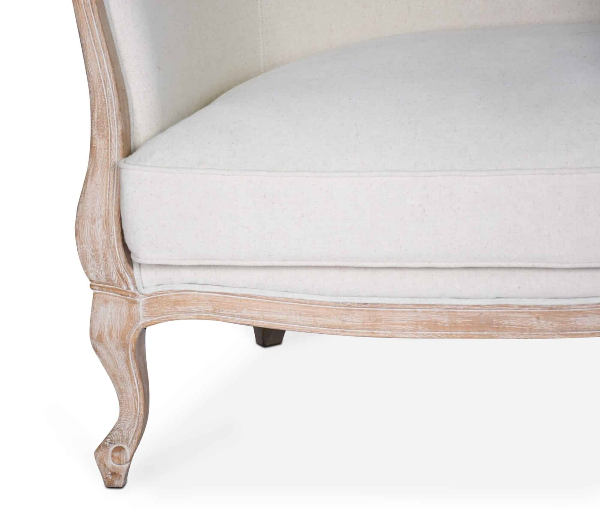 שילוב של עץ מעוטר ובד בצבע אוף וויט