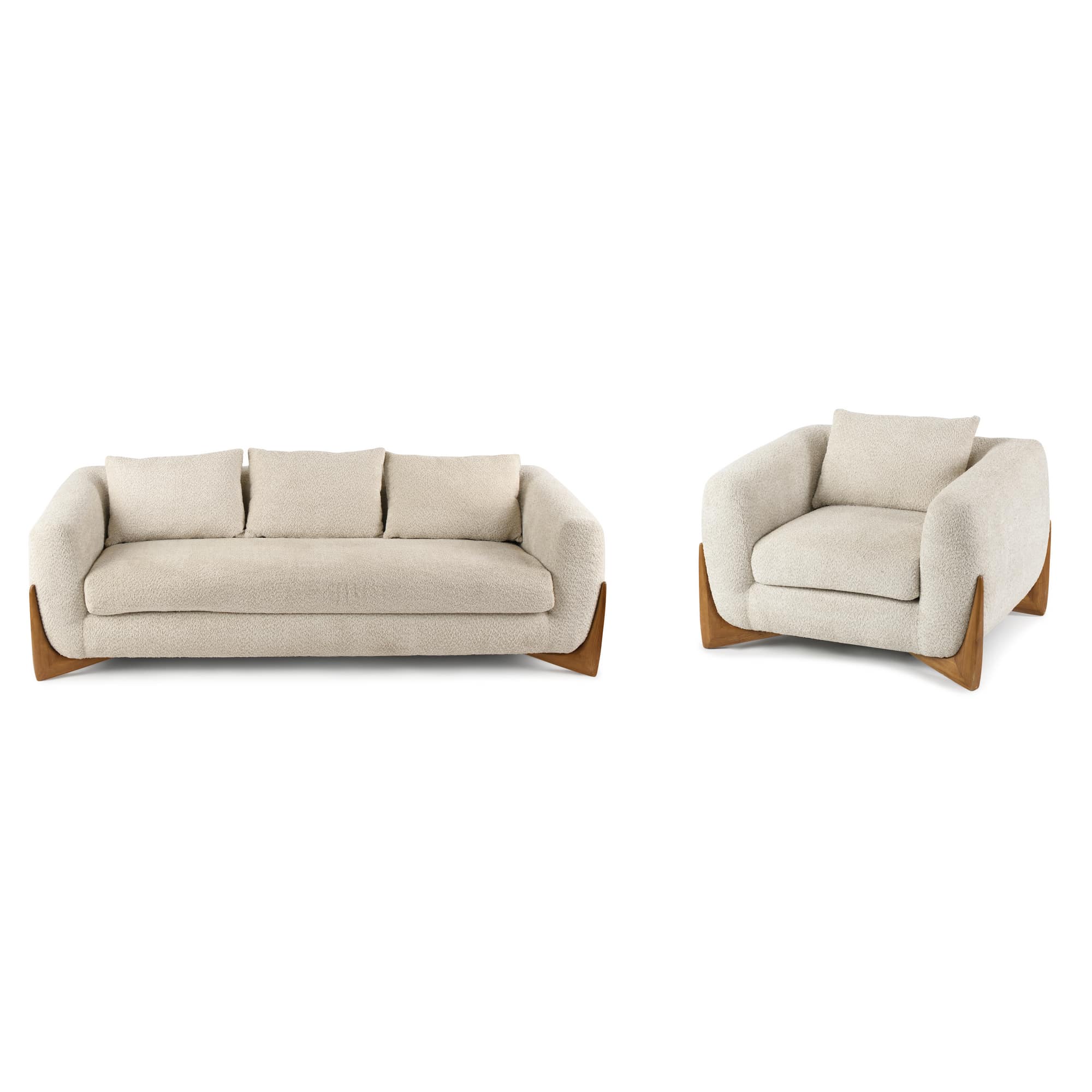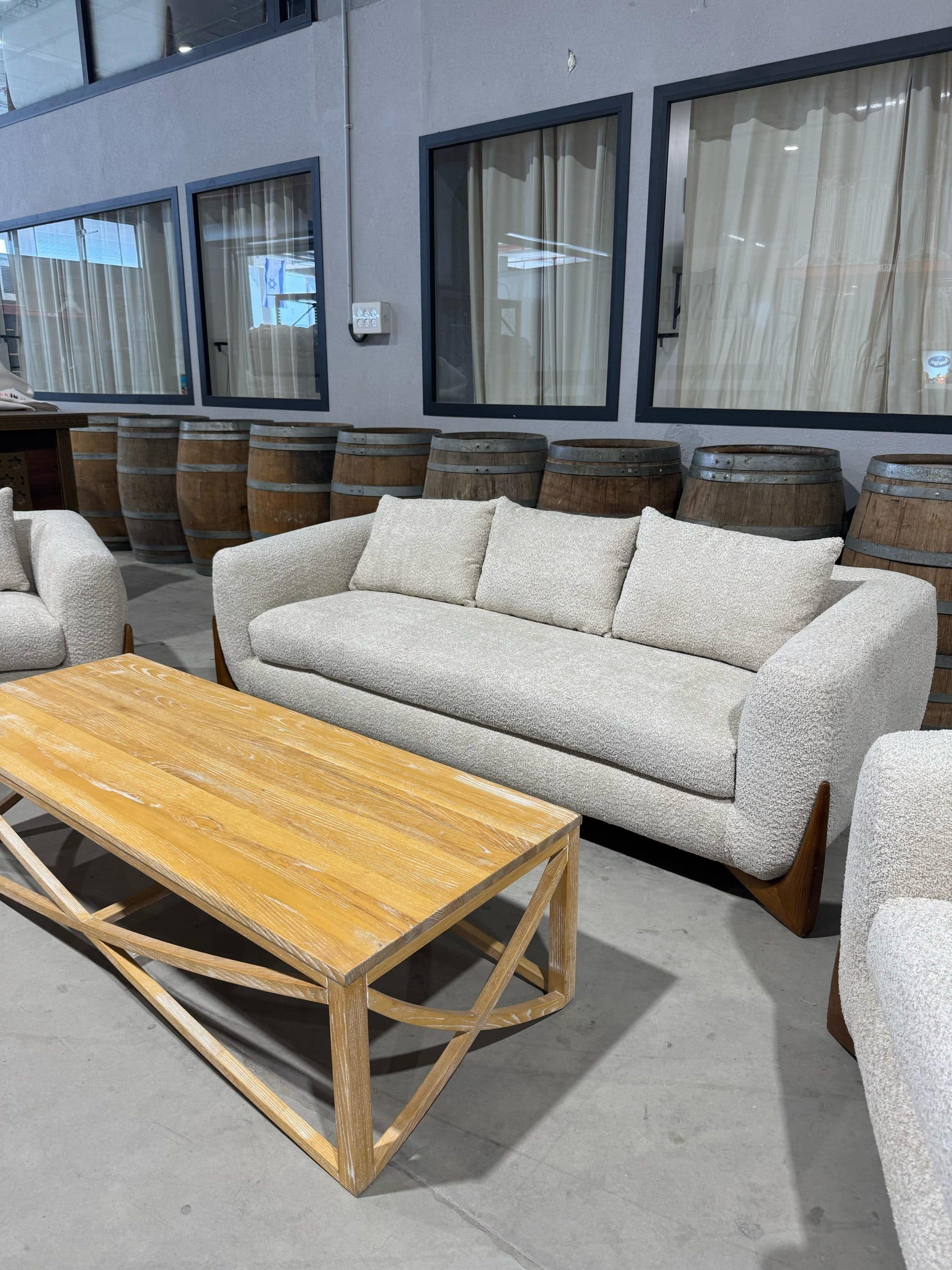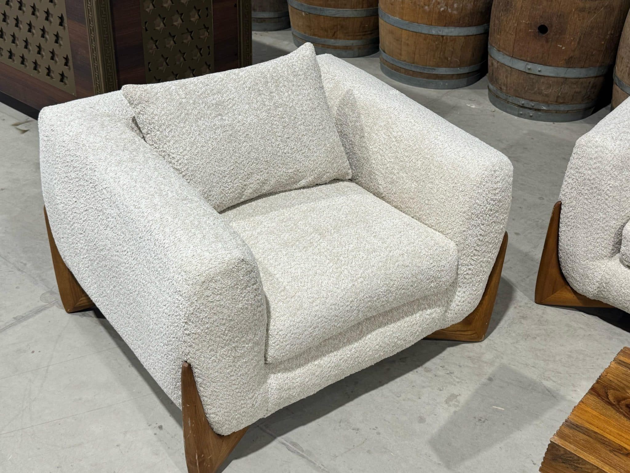 שילוב של בד בוקלה בגוון קרם/חום ורגלי עץ אגוז