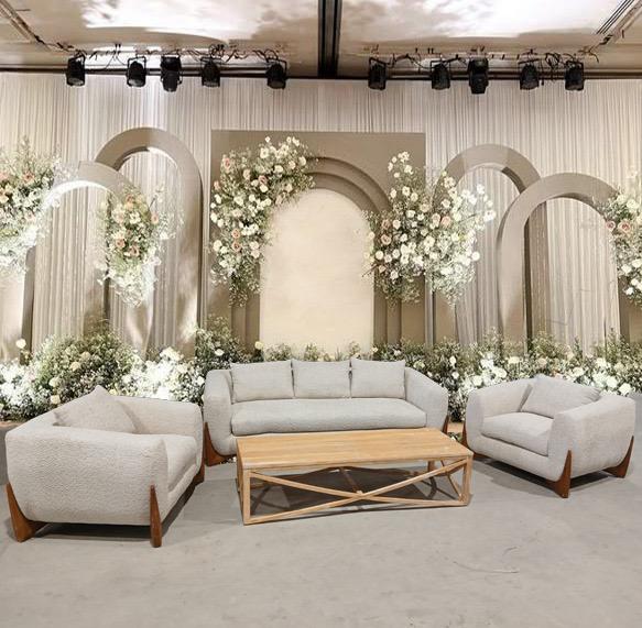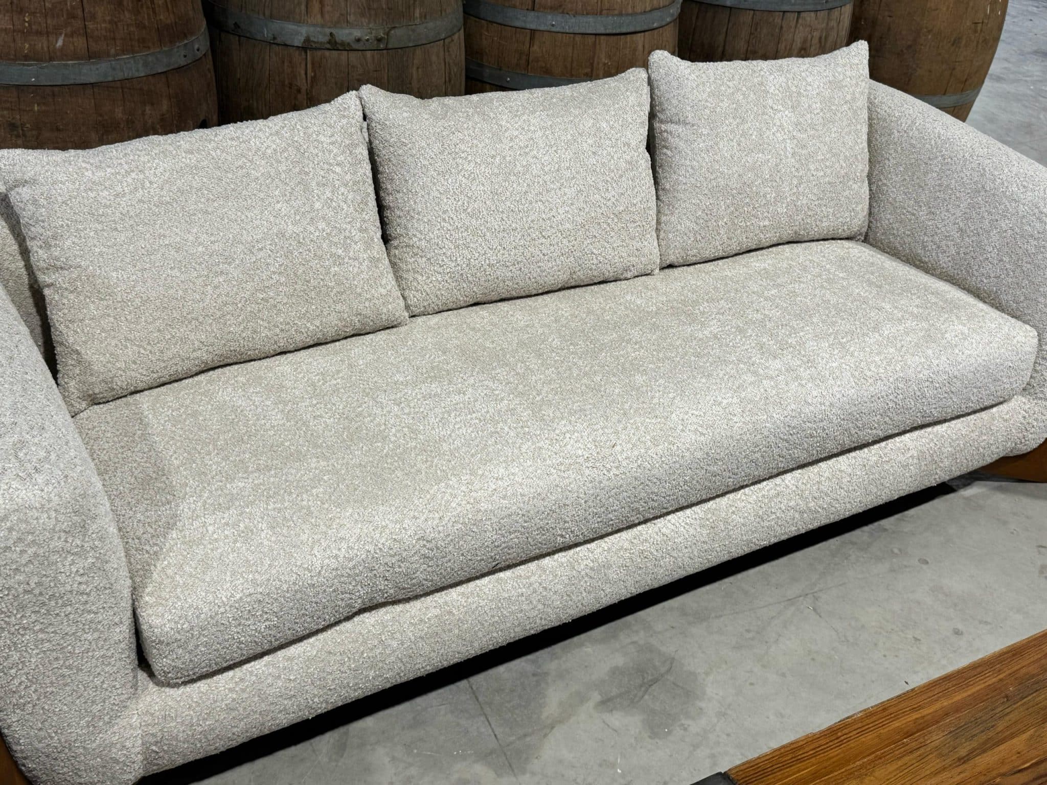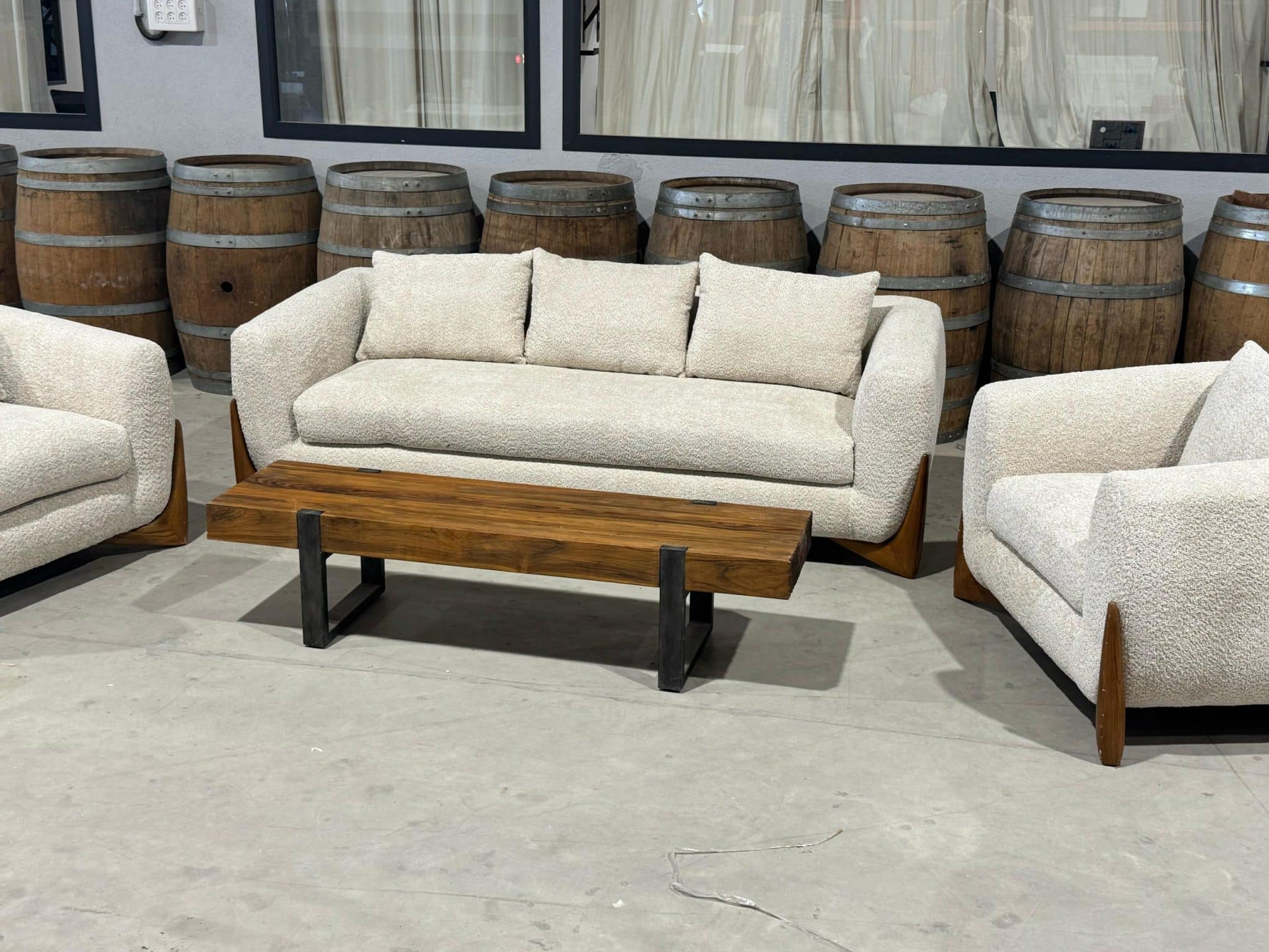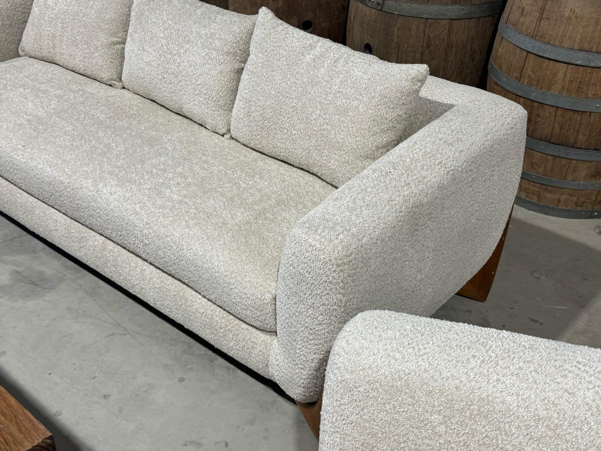 שילוב של בד בוקלה בגוון קרם/חום ורגלי עץ אגוז