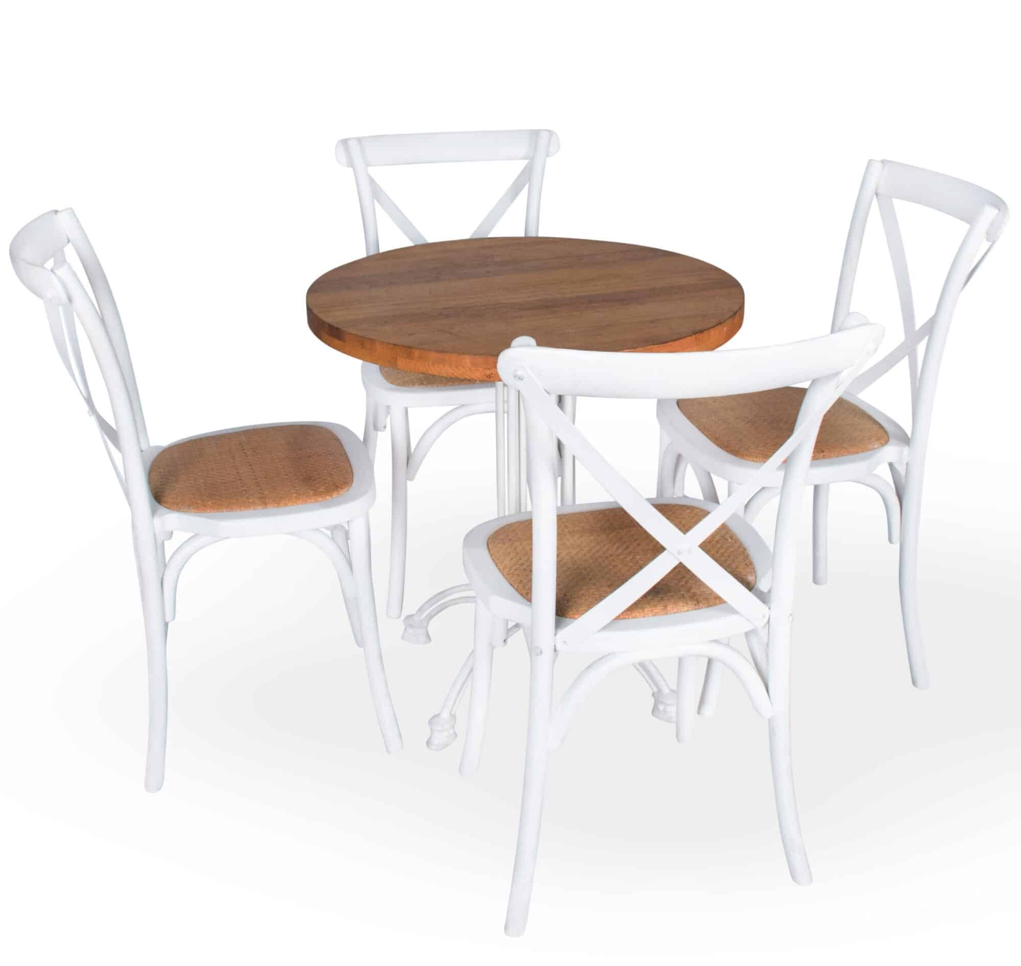 שולחן בית קפה אלון עם כיסא קרוס לבן