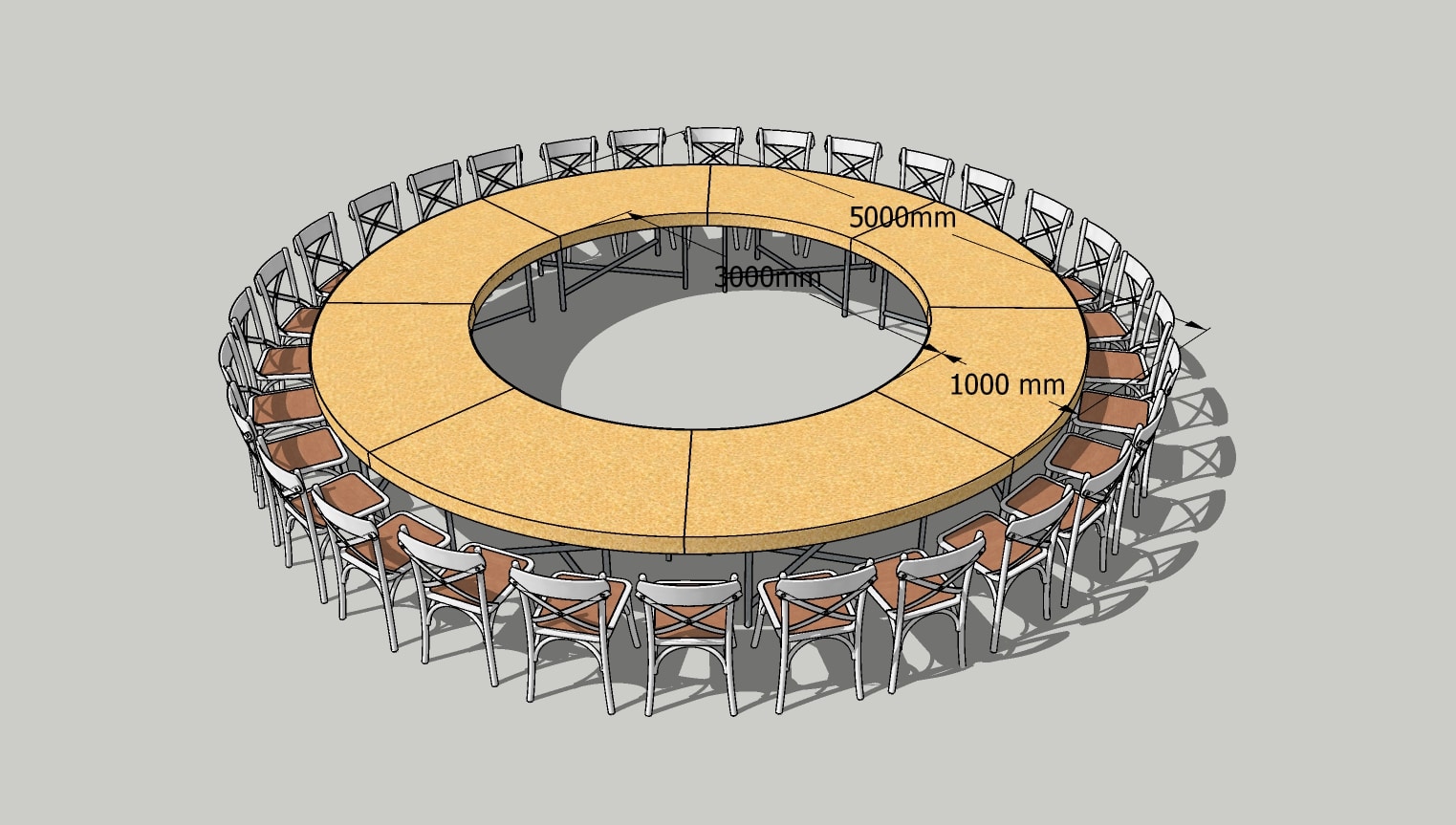 שולחן עגול שלם קוטר 5מ': 24-28 מקומות ישיבה בהיקף החיצוני