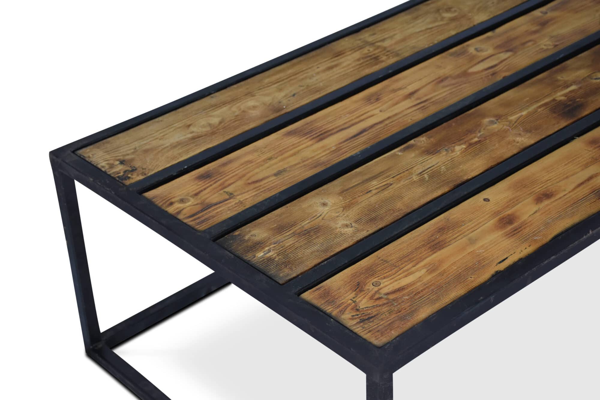 שולחן עץ צבע וואש טבעי שלבים מסגרת מתכת שחורה, מידות 120/70ס"מ, גובה 45ס"מ