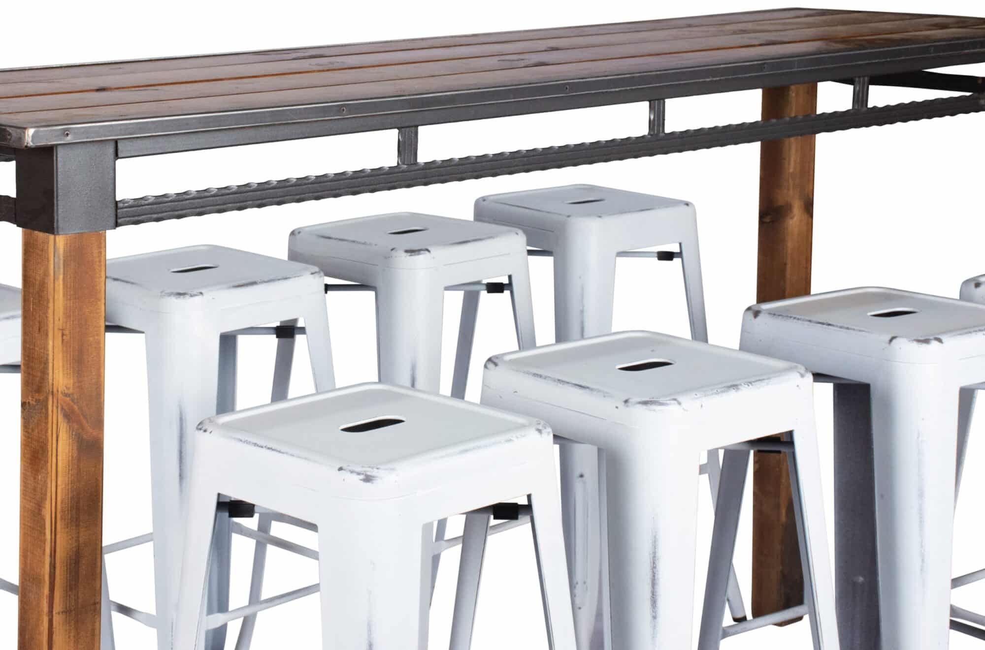 שולחן עץ שלבים גובה בר עם כיסאות דורותי בר לבנים