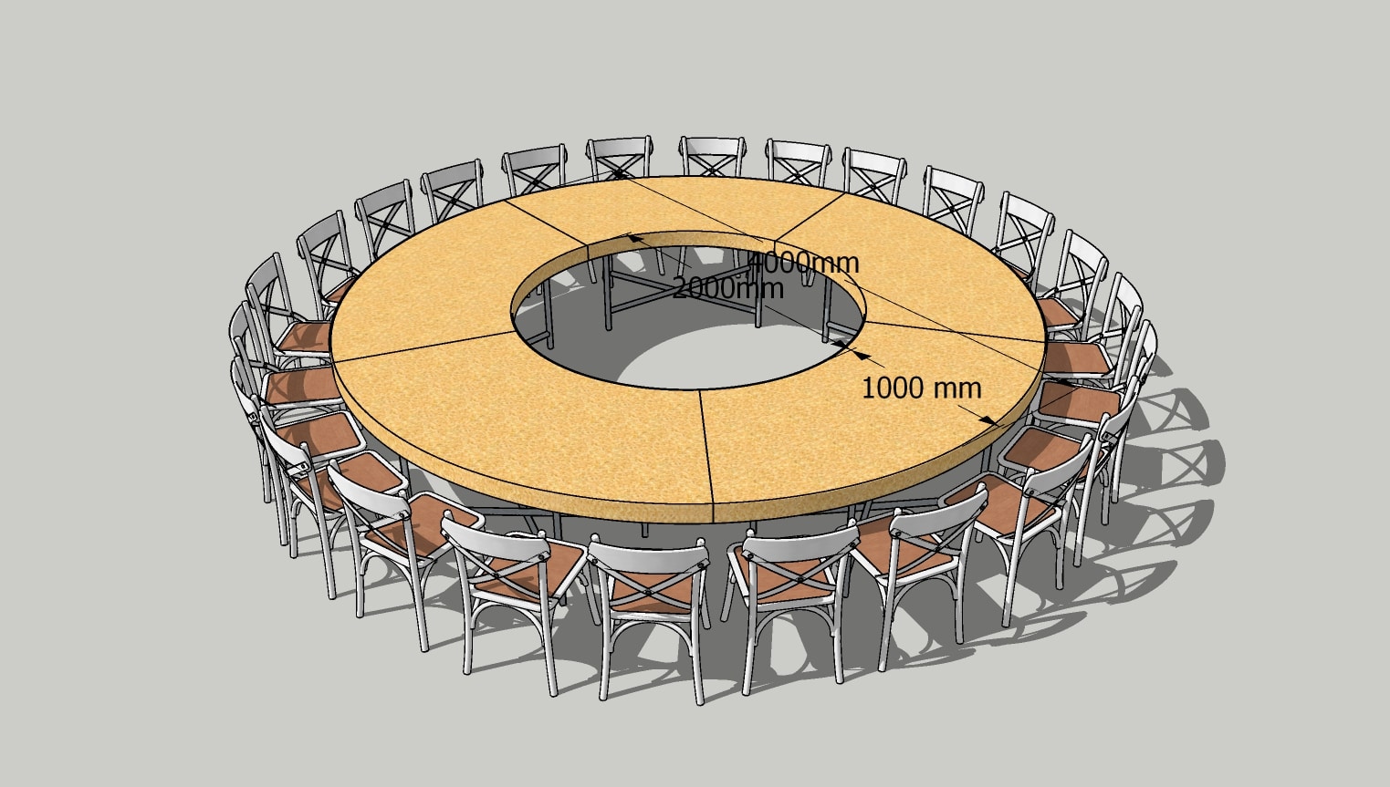 שולחן עגול שלם קוטר 4מ': 20-22 מקומות ישיבה בהיקף החיצוני